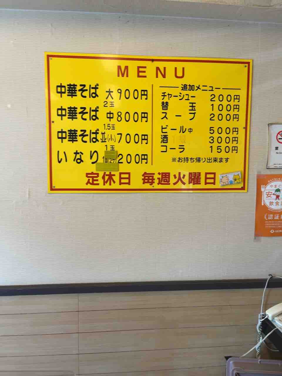 中華そばの中といなりをお願いしました。