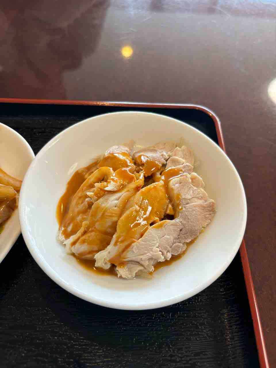 棒棒鶏が付け合わせ。悪くない。