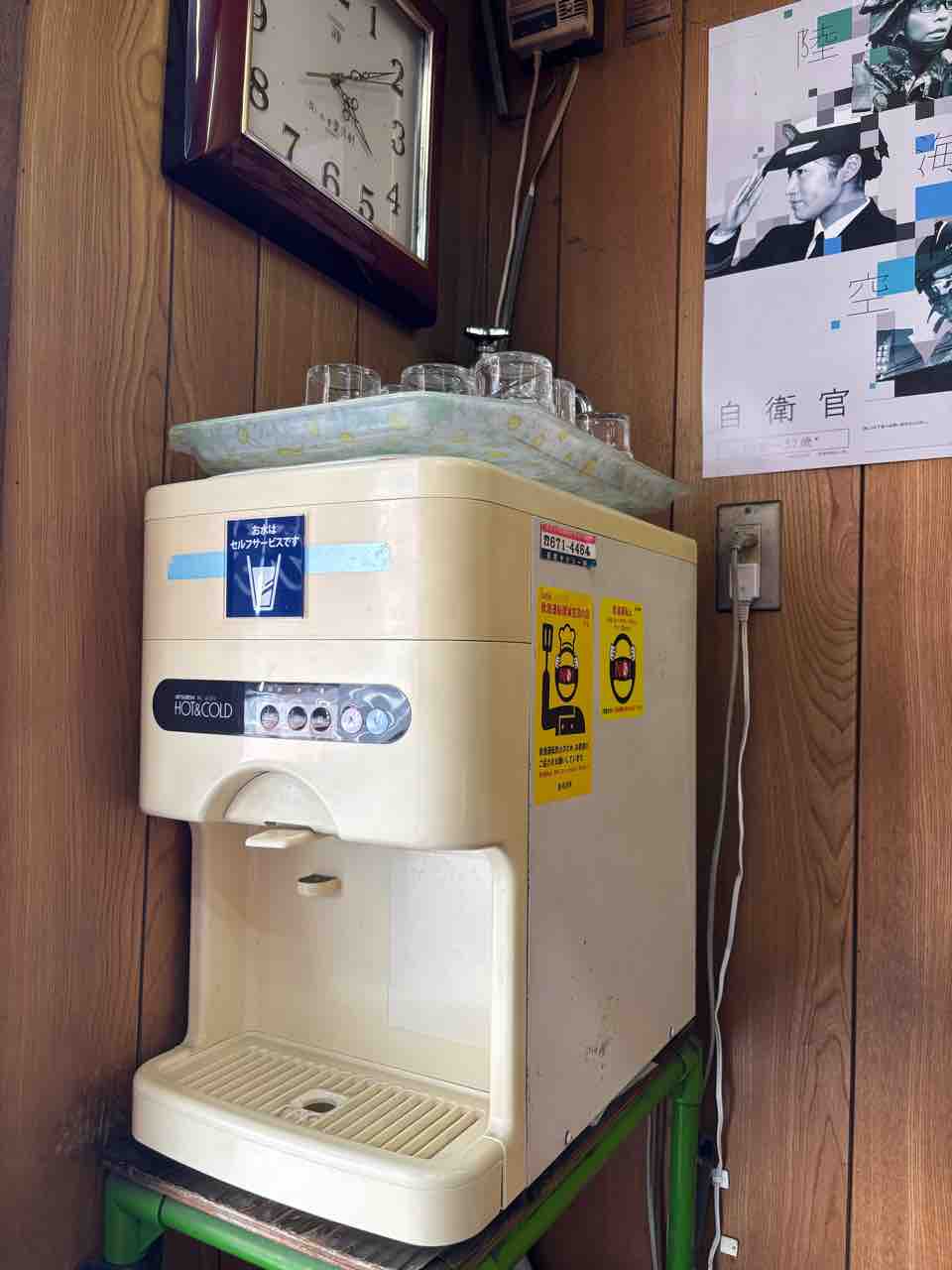 貸切状態でしたので冷水機の側へ。