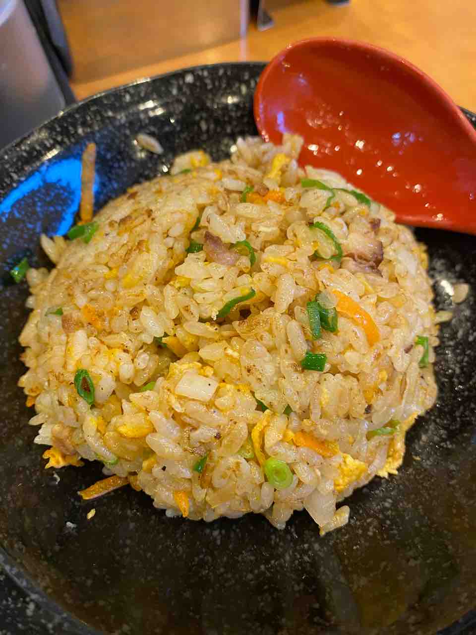 2020年11月23日 暖暮 若木台店@福岡県福津市 糟屋郡で用事を済ませて帰路へ。昼もとうに超えて腹ペコでこちらへ飛び込む。西新店には飲みの〆にたまに利用してた。ラーメンとチャーハンセットの食券を購入。会計は1000円オーバー。麺の硬さはかたで、辛味だれは普通でオーダー。チャーハンから配膳。シットリタイプで、中々美味しい。あーこんな味だったかなと懐かしむ。厚みのあるスープは少し温度が低い感じがした。早めに辛味だれを溶かしながら食べる。このタイプにお決まりの細麺も悪くないかな。チェーン店としては、一蘭よりは好きです。暖暮若木台店福岡県福津市若木台4-1357-1440940-72-4330