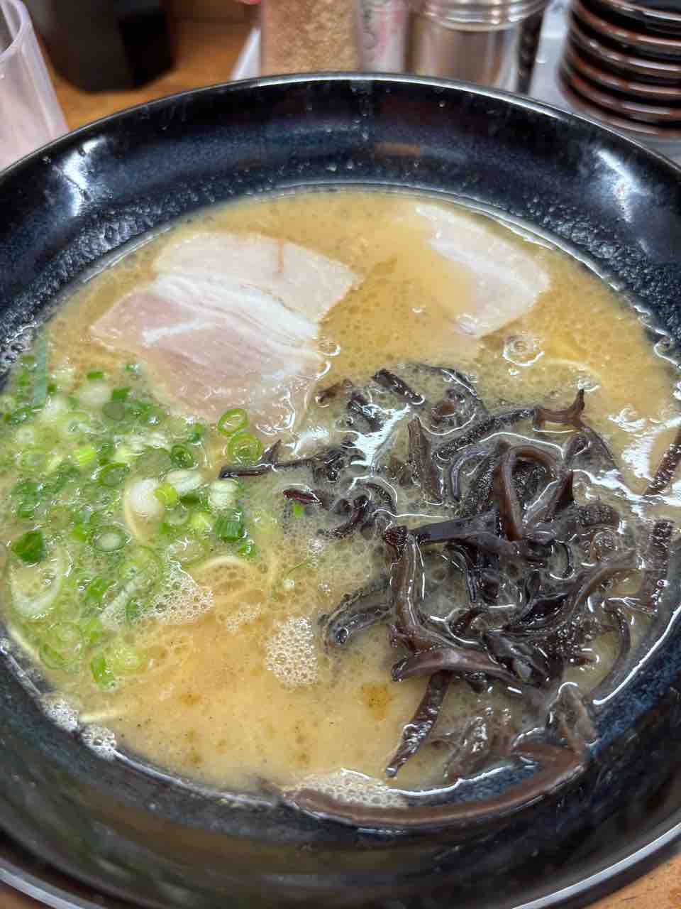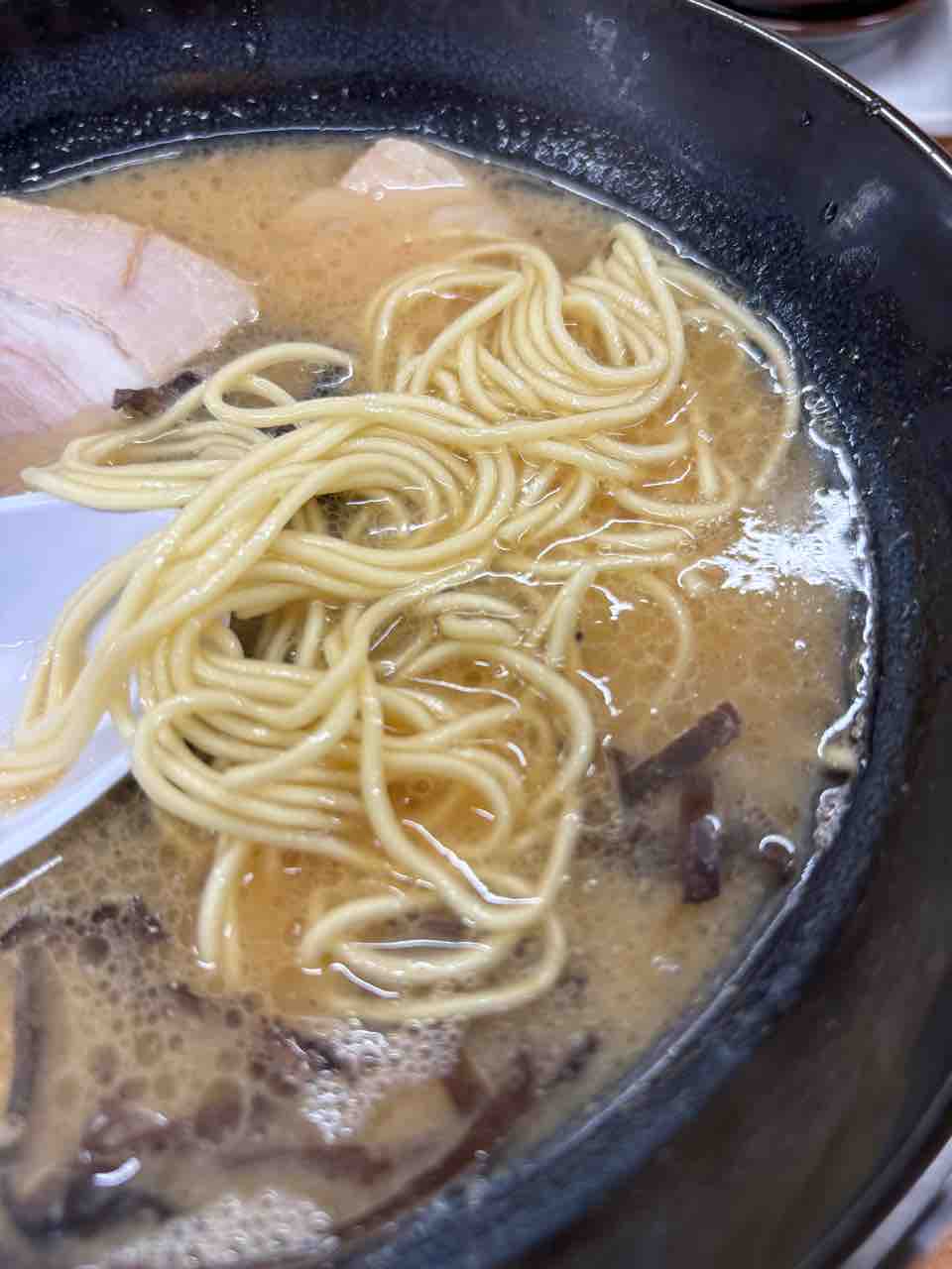ライトな豚骨感はあって少し複雑な酸味も。