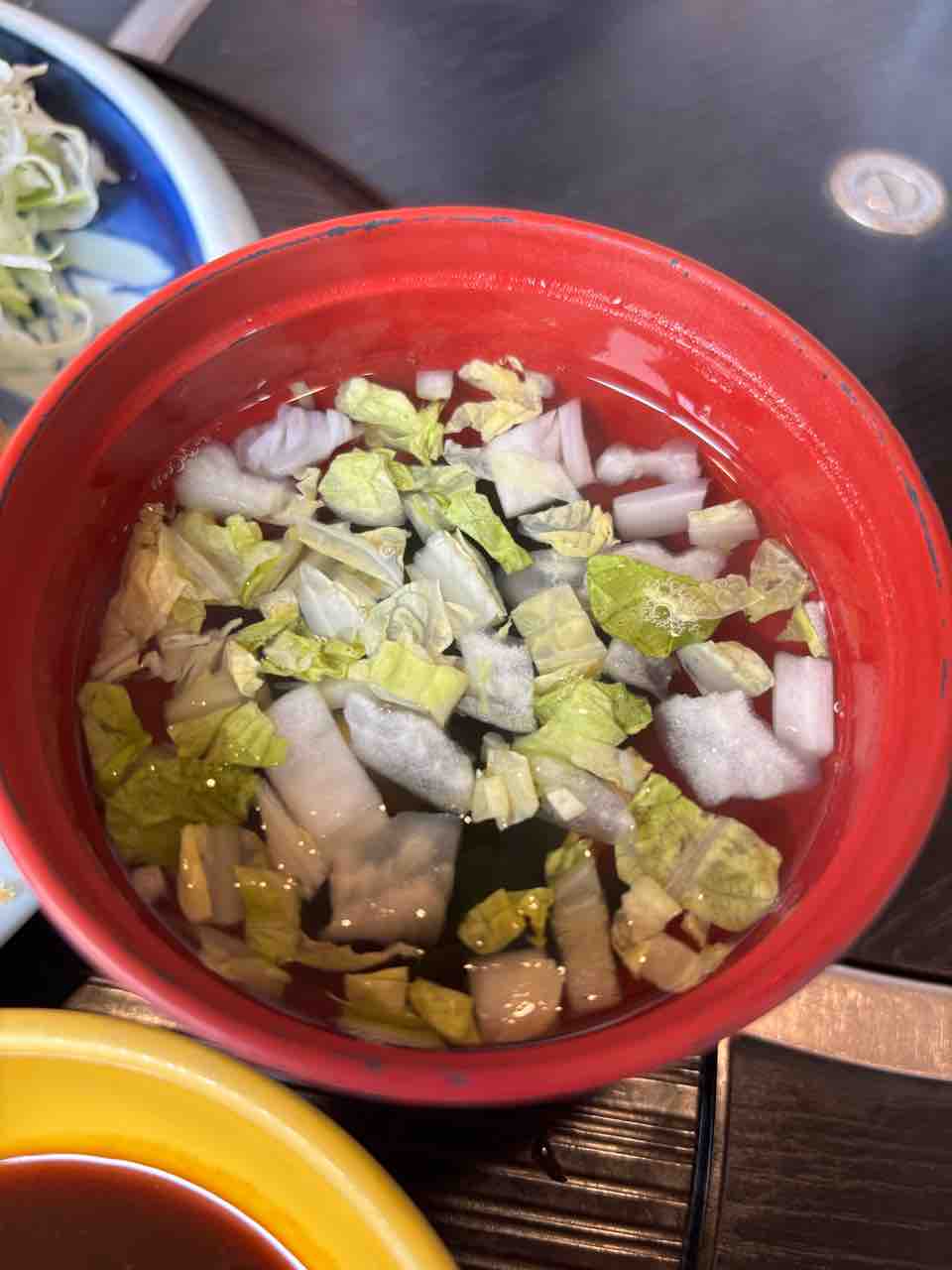 一口行くと正真正銘のこれぞの無味無臭スープ。