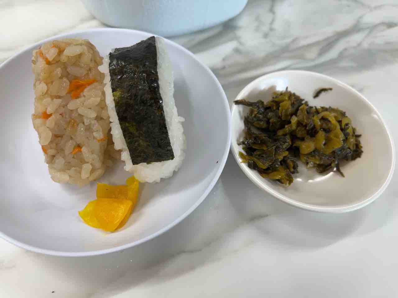 おにぎりもお願いしました。かしわと白のハーフで。